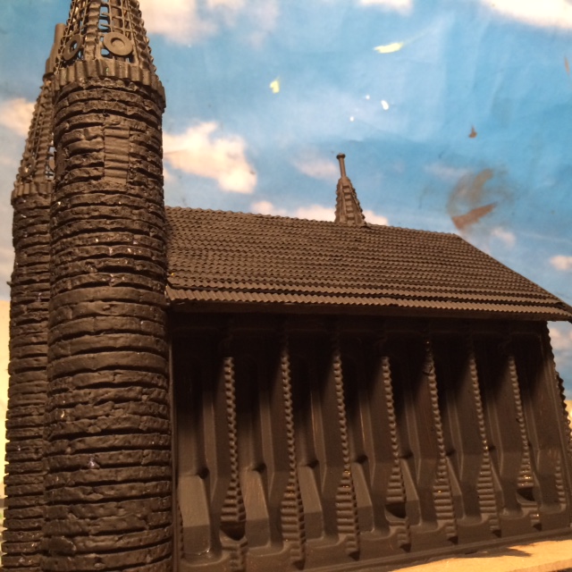 Die Plastikeinbettungsstruktur erinnerte mich an die Seiten eines Kirchenschiffes und ich habe mit dem Kirchenbau einschließlich Fotodokumentation begonnen.