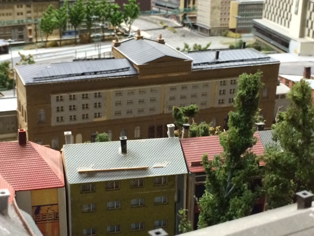 Dritter Aktenvermerk: Trotz reichlich Nitroverdünner und Esbit im Innenraum brennt nichts, wenn keine ausreichende Sauerstoffzufuhr vorhanden ist. Irgendwann aber war das feurige Ergebnis dann doch soweit zufriedenstellend. Übrigens hatte das Haus wirklich auch eine Zwsischendecke, eine Holztreppe und eine Inneneinrichtung. D.h. "hat", denn das Modell (mitsamt einfachem Kleindiorama) existiert immer noch. Ist aber aus heutiger Sicht nicht mehr wirklich vorzeigbar.