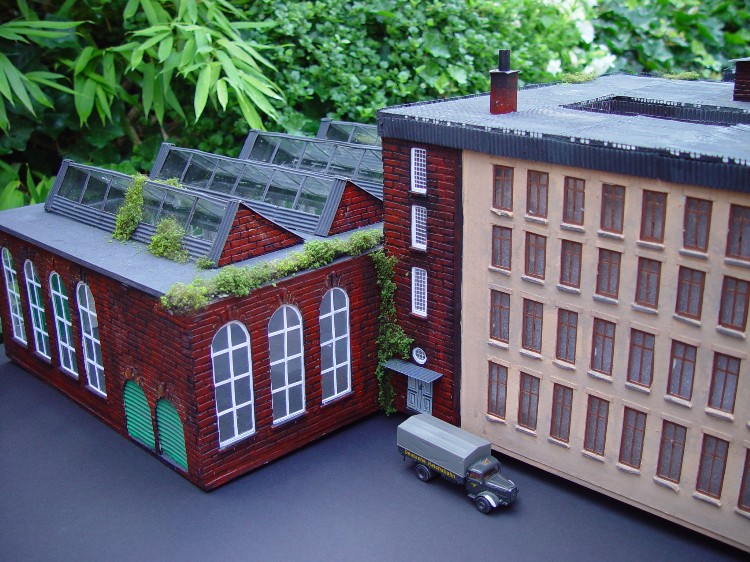 jetzt habe ich das fertige Fabrikgebäude mal in den Garten gestellt, bevor es auf unserer Anlage eingebaut wird: