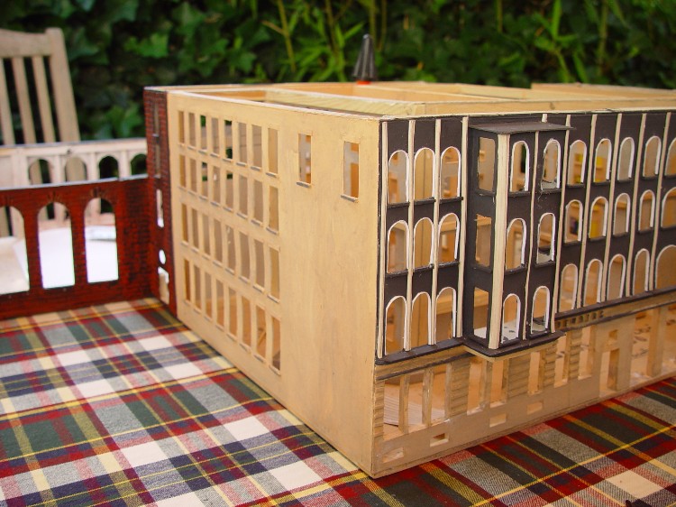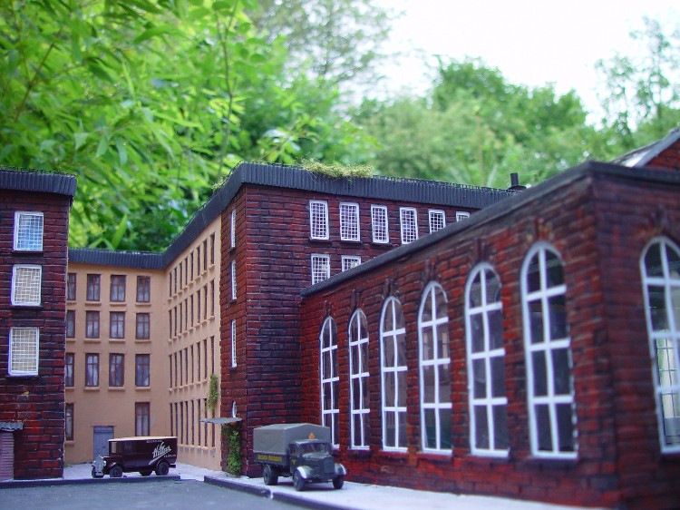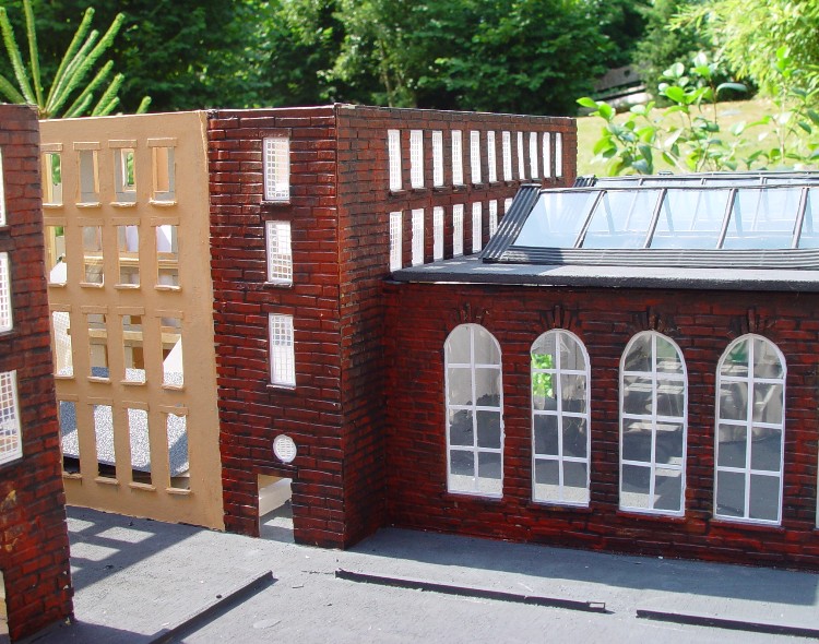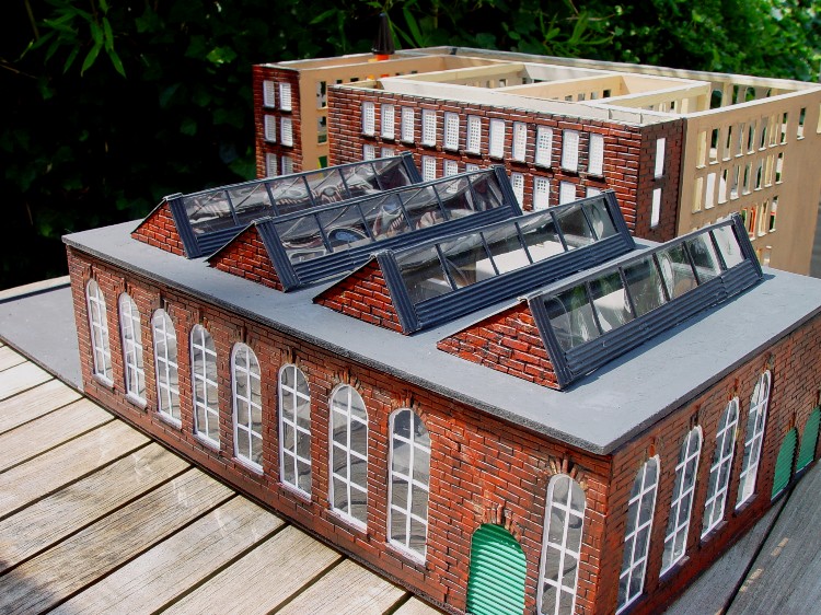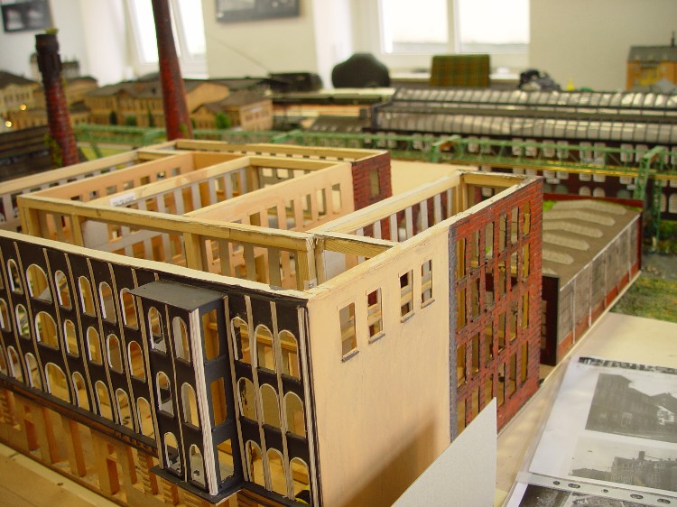 Die Seitenteile erhalten das zu der Fabrik passende Mauerwerk.