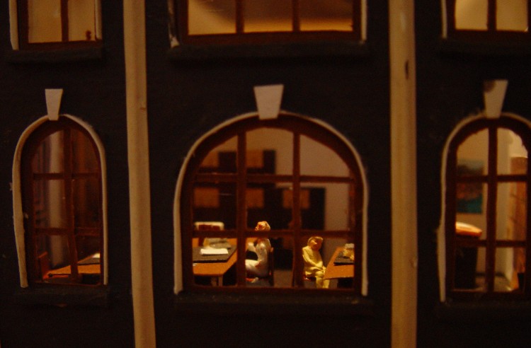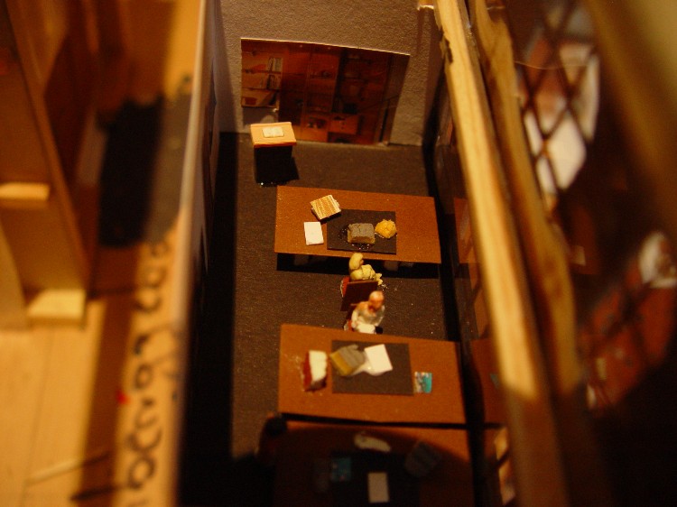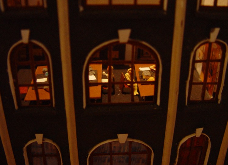bei einem Büro habe ich die Gardinen weggelassen und eine Inneneinrichtung gebastelt: Schöne Grüße
