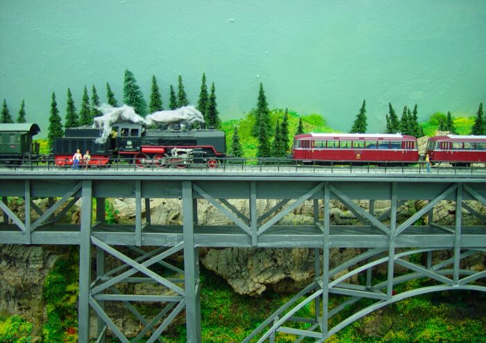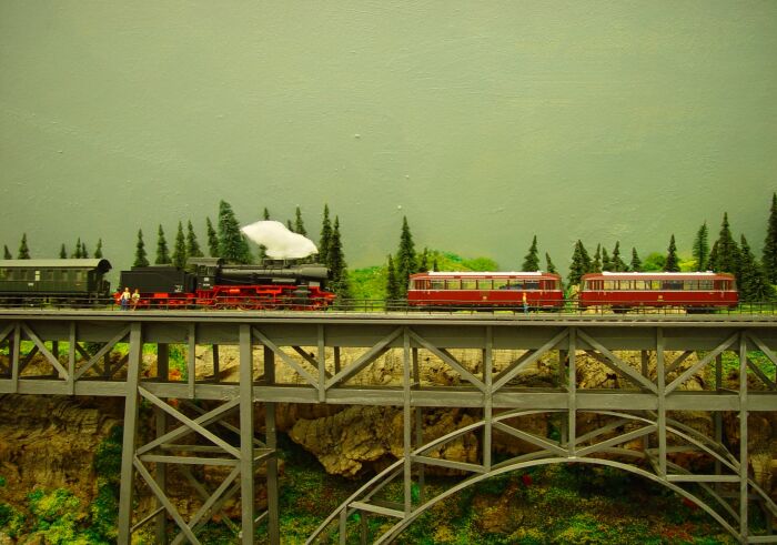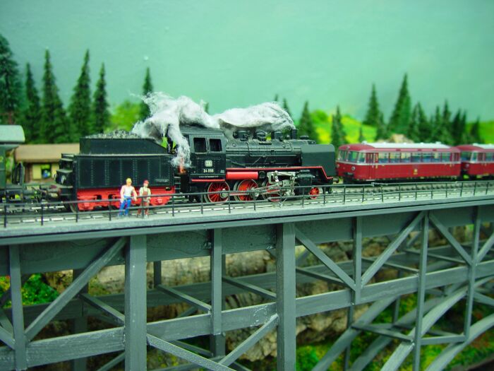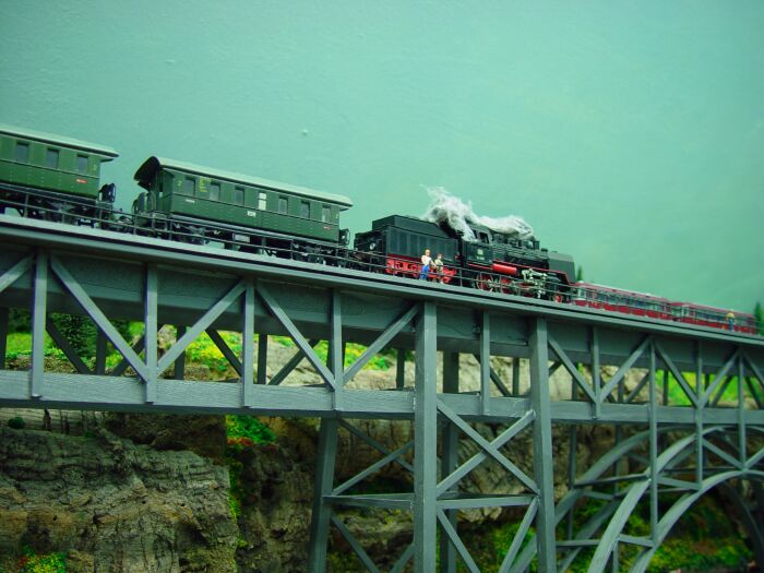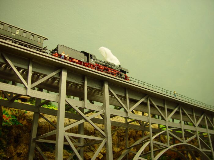 Reinstellen aber kann ich das Nachstellen dieser Szene auf meiner Modellbahn-Müngstenerbrücke:
