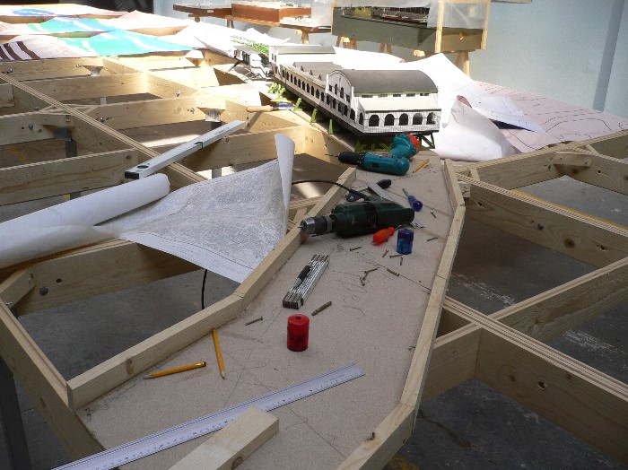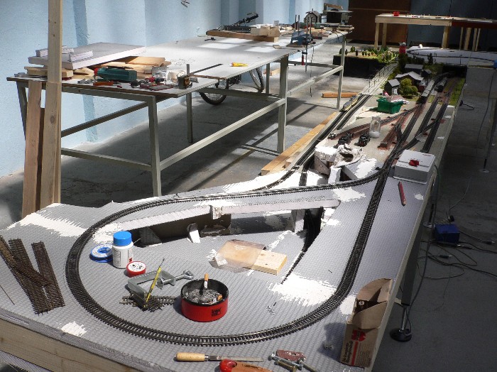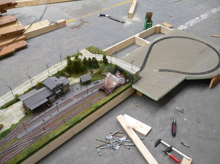 Die Bergteile über den Kehrschleifen und dem kleinen Schattenbahnhof müssen abnehmbar sein: