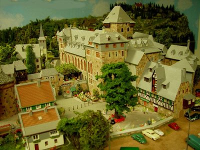 Ihr Modell ist liebevoll, ansehlich und sorgfältig gebaut - vielleicht schaffe ich die Sorgfalt mit meiner Nonchalance nicht an allen Punkten - aber durch die Verwendung von zu vielen Industrieteilen (Dächer usw.) leidet deren Modell doch hinsichtlich der Gesammtwirkung. Außerdem stimmen auch die Außenproportionen der Gebäude nicht. Die spitzen Erkerdächer sind viel zu niedrig, sechseckige Erker wurden viereckig gebaut und alle Dachgauben sind zu klein. Dann haben sie beim Bergfried nicht berechnet, daß der innerhalb des Schloßhofes auf einem Berg steht. So ist er wesentlich zu klein und ragt nur gering über das Hauptgebäude heraus.