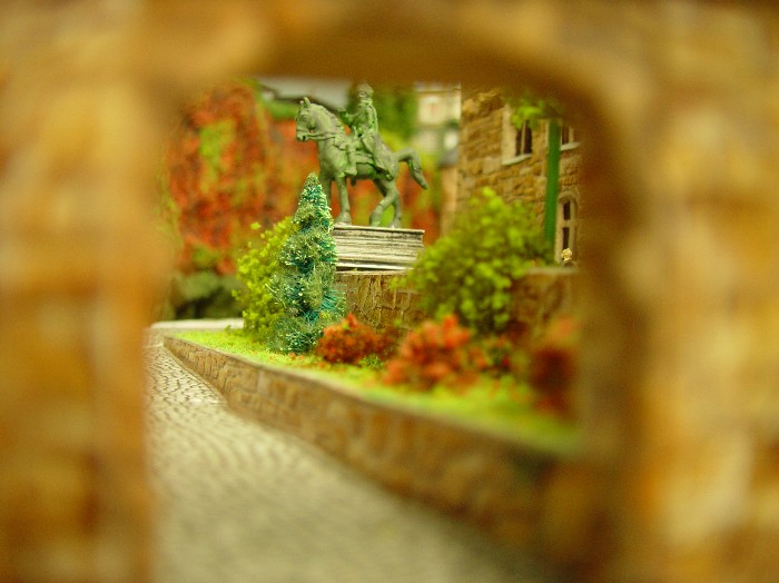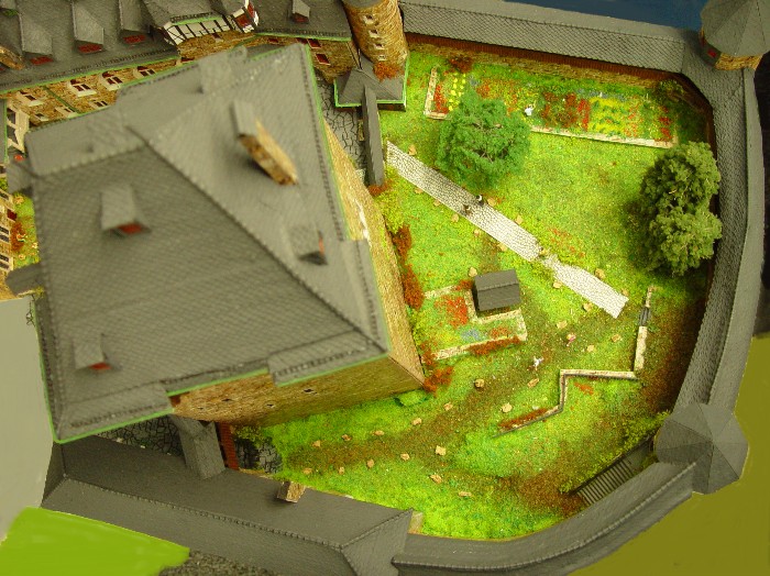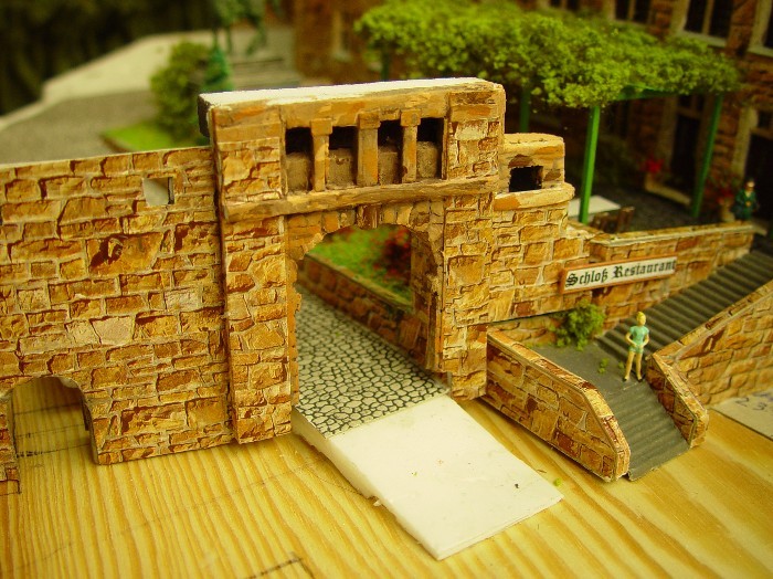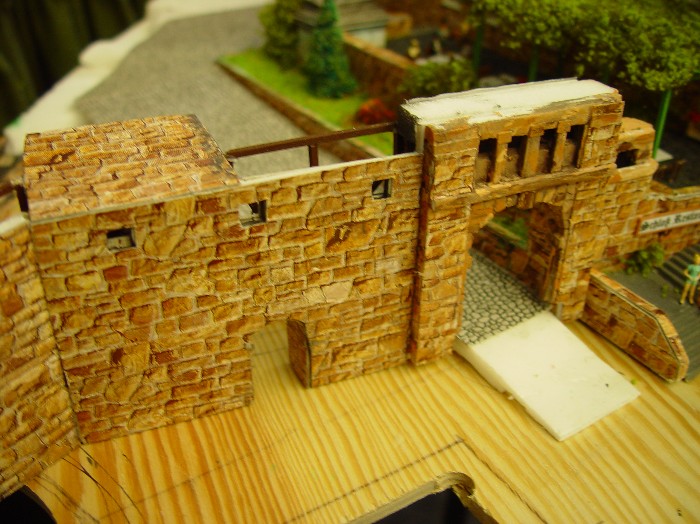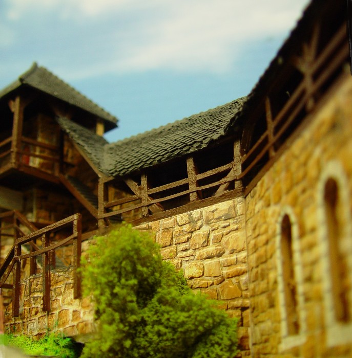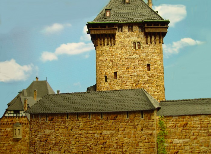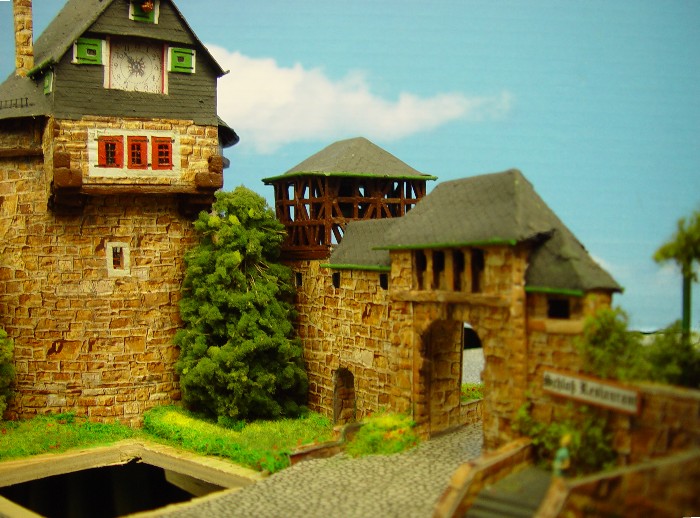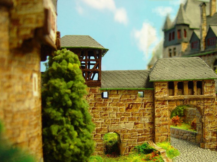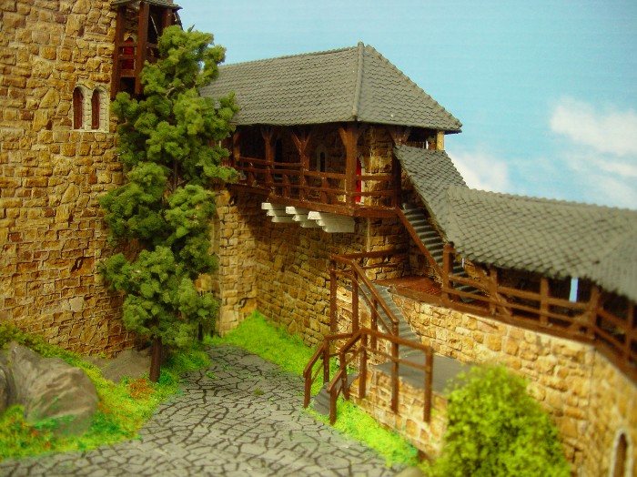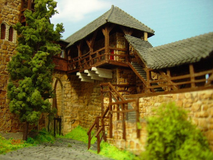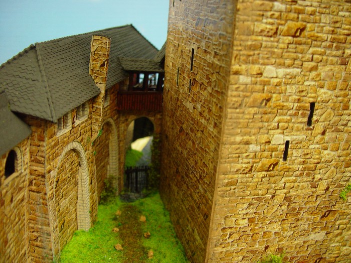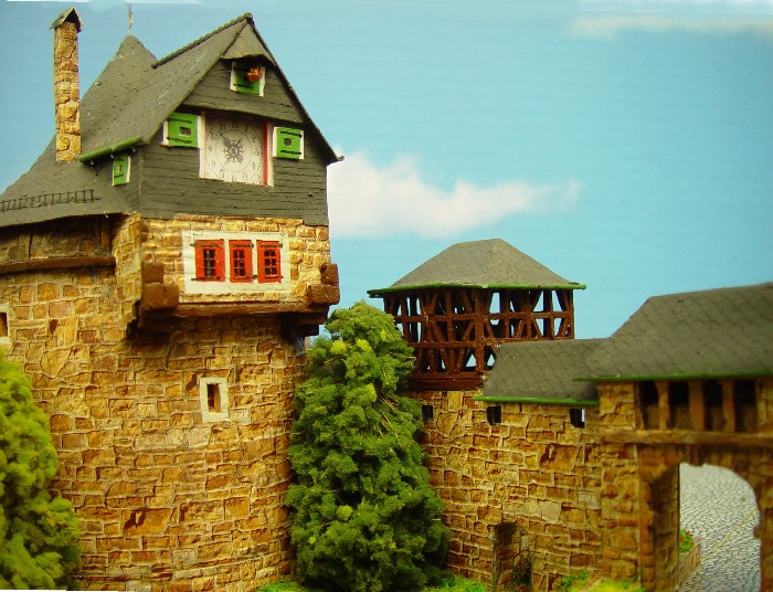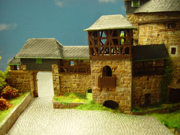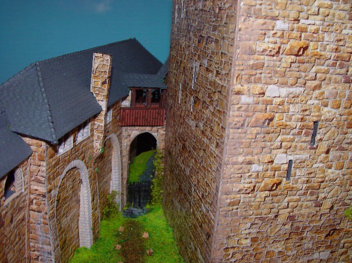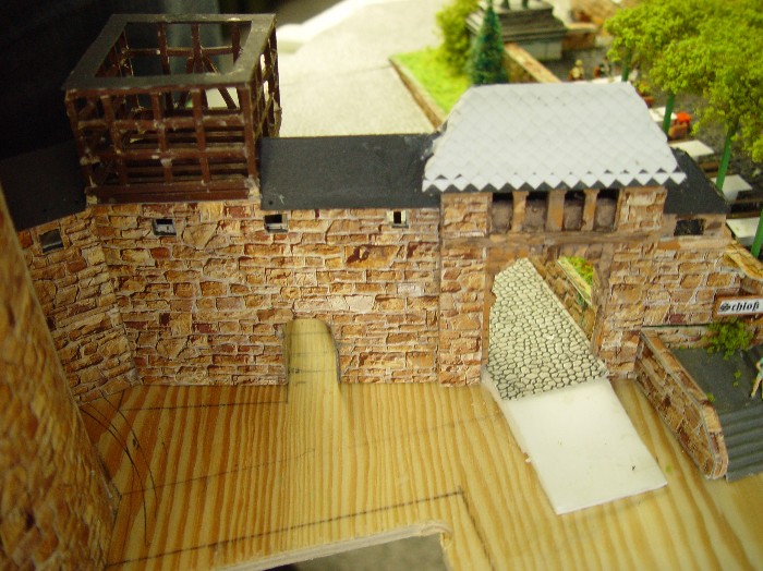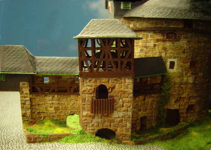 Das Höhenverhältnis Mauer-Wehrgang schein im Bild bei etwas 2:1 zu liegen und im Modell bei 1:1. Somit trübt das ein wenig den Eindruck, besonders, weil man ja das Vorbild direkt vor Augen hat und vergleichen kann.