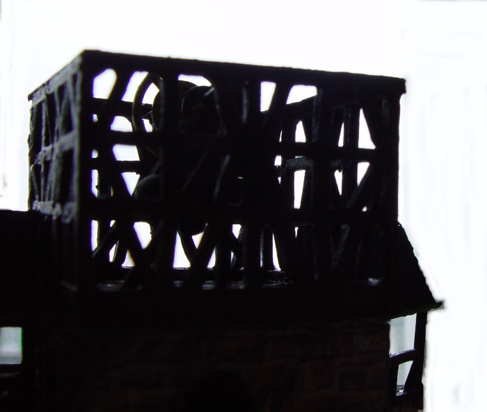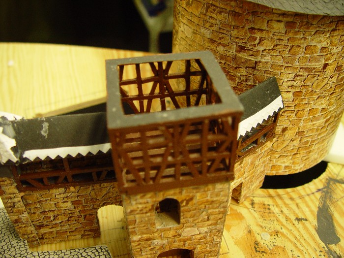Dann kam die Kombination aus Tor, Wehrgang und Glockenturm mit Fachwerkgestühl dran: