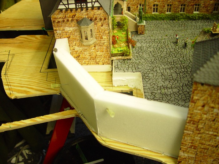 Für den Rundturm links mußte erst mal ein Plastikeimer herhalten: