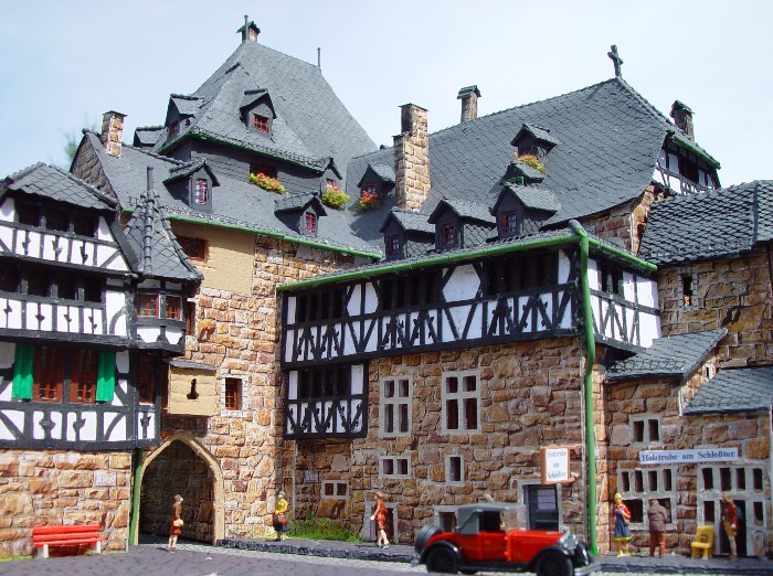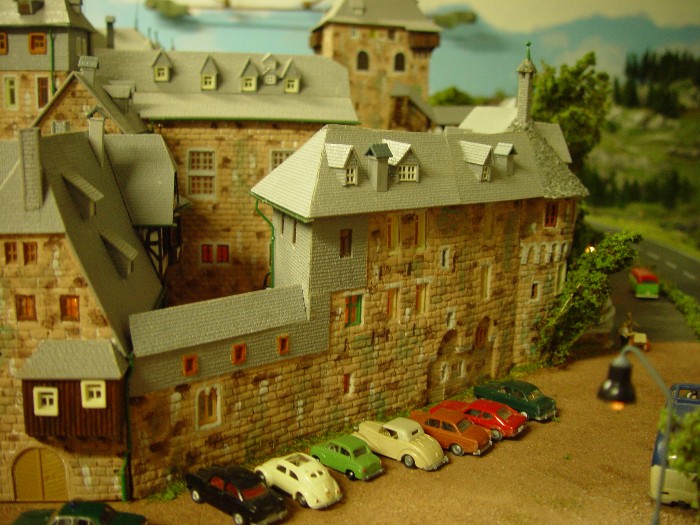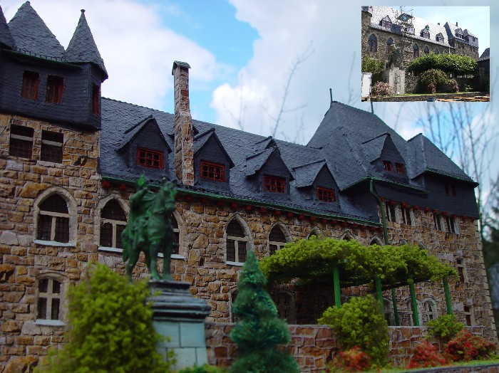 Unten habe ich noch Vergleichfotos von eimem Schloß-Burg-Modell der Eisenbahnfreunde Solingen angehangen.