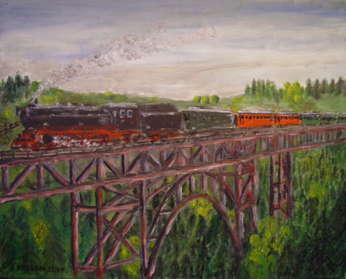 Irgendwie habe ich das Gefühl, die beiden Loks am rechten Bildrand (vor allem der "verschwindende" Tender) sind in Bewegung (die Wirkung kommt durch auffallend lang gezogene Striche im Gegensatz zu den Strichen sonst im Bild) - gefällt mir gut!