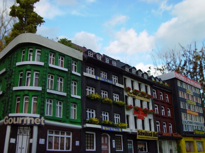 Sehr schöne Häuser, nur eine Sache würde mich "verrückt" machen. Beim Transparent "Auf diese Steine können Sie bauen" müsste die 2.Zeile auch mittig formatiert sein, nicht linksbündig. Ein solcher Leichtsinnsfehler würde mich so lange ärgern, bis ich ihn behoben hätte