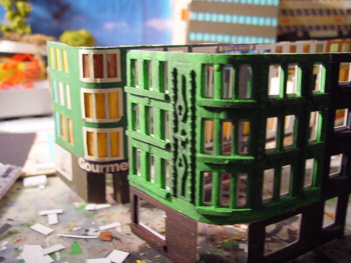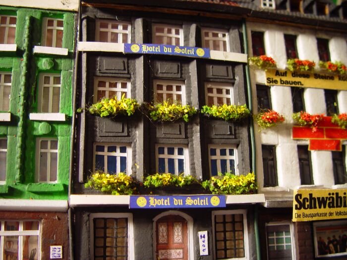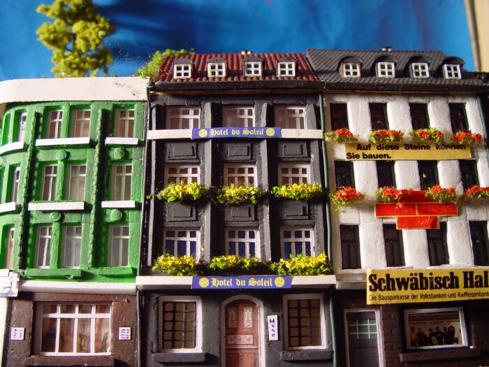 Einzig die Seitenwände beim "Sonnen Hotel" sind vielleicht doch etwas krumm geraten, ich glaube ehrlich gesagt nicht, dass das vom Fotografieren kommt (v.a. unten links). Vielleicht kannst Du da doch noch was gerade richten, dann wäre wieder alles perfekt.