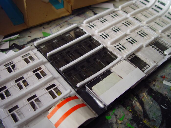 Nun werden aus Depronstreifen die Abstandshalter für die Gardinen aufgeklebt: