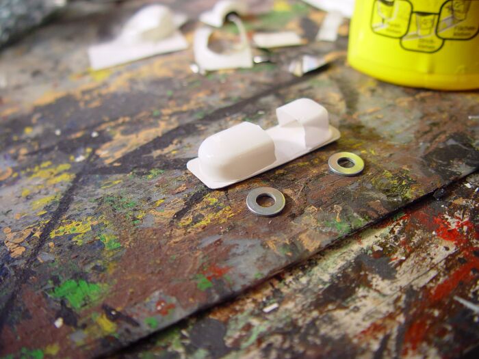 Die Kotflügel werden auch aus abgeschnittenen und schwarz lackierten Blisterteilen angeklebt.