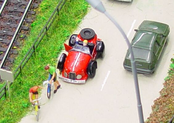 , der auf meiner Anlage gerade hinter ein paar Radfahrern gehalten hat, um etwas zu fragen.