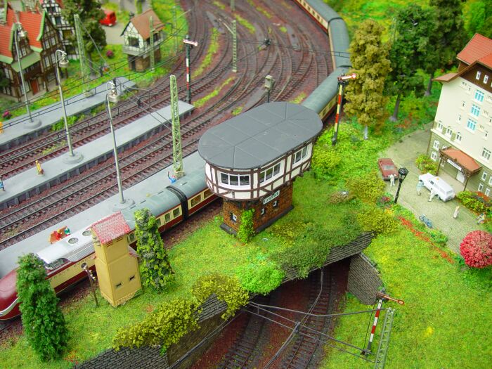 Das Stellwerk steht auf einer Tunneleinfahrt, bei dem, so wie es aussieht, reger Verkehr herrscht. Haben deine Statiker das wirklich so genehmigt? Ich würde an deiner Stelle das noch mal nachprüfen, sonst bekommst du bestimmt Ärger mit den Behörden. Schlimmer noch, der Tunnel würde der Belastung des Stellwerks nicht standhalten und würde zusammenbrechen. Dann hast du evtl. ein Problem mit deinem Fahrplan.Dr. Peter Holbeck hat geschrieben: ... und probehalber auf meine Anlage gestellt ...