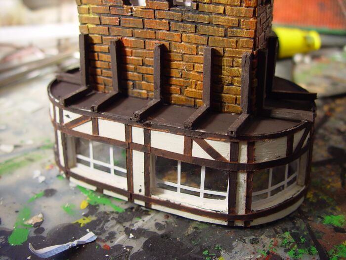 Das Stützfachwerk unter dem überstehenden Stellwerksteil braucht noch Querbalken.