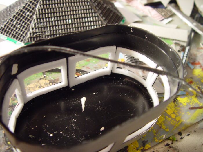 Der Innenraumboden wird aus Blisterrändern und die Sitzbank aus kleinen Depronstückchen hergestellt