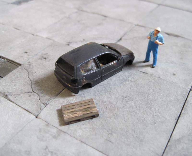 1.Ich habe vor ewiger Zeit auch mal an einem kleinem "Schrottplatz" Diorama gebastelt.
