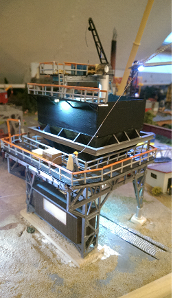 Ich befülle den Silo nur von Hand da ich keinen Platz für eine andre Lösung habe. Die Entladestation ist auch ganz unspektakulär in einem Abstellbahnhof auch wegen Platzmangel