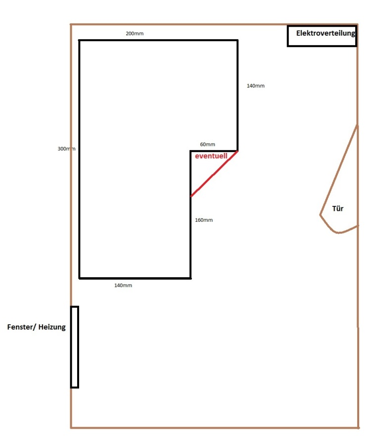 Schön wäre, wenn Du, Björn, eine möglichst genaue Skizze (die Zeichnung ist egal, aber die Maße sollten richtig sein) beibringen könntest. Dann plant es sich viel leichter, vor allem, wenn man weiß, wo die Tür ist, die man nicht zubauen darf und solche Scherze.