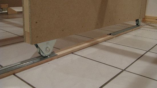 Die Anlage hat die Ausmaße von 6m x 3,5 bzw. 2,5 m (U-Form).Um an die Anlagenhinterkante, bzw. bequem hinter die späteren Berge zu gelangen wurde die gesamte Unterkonstruktion auf 9 Rollen gestellt und mit einem Antrieb versehen, damit ein Fahrweg von 57 cm quer zum Raum zurückgelegt werden kann.