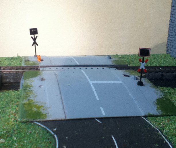 ich habe auf meiner Modellbahnanlage einen Bahnübergang. Dieser bahnübergang besteht aus einem älteren von Märklin von dem ich die kaputten Schranken und Lichter entfernt habe und durch Viessmann 5060 ersetzt habe. Das Problem ist aber mich stört der Farbunterschied zwischen Bahnübergang und Straße, den man sehr deutlich erkennt. Außerdem ist der BÜ breiter als die Straße. Kurz gesagt ich würde gerne einen eigenen bauen der farblich und von der größe her besser dorthin passt und zu diesem BÜ meine vorhandenen lichter und Schranken(wie ich bereits woanders erwähnt habe) hinzufügen. Weiß jemand wie man so einen Bahnübergang, d.h. einfach nur eine Straße über die Schienen noch ohne Funktion gut und realistisch nachbauen kann? Der BÜ ist übrigens eingleisig.
