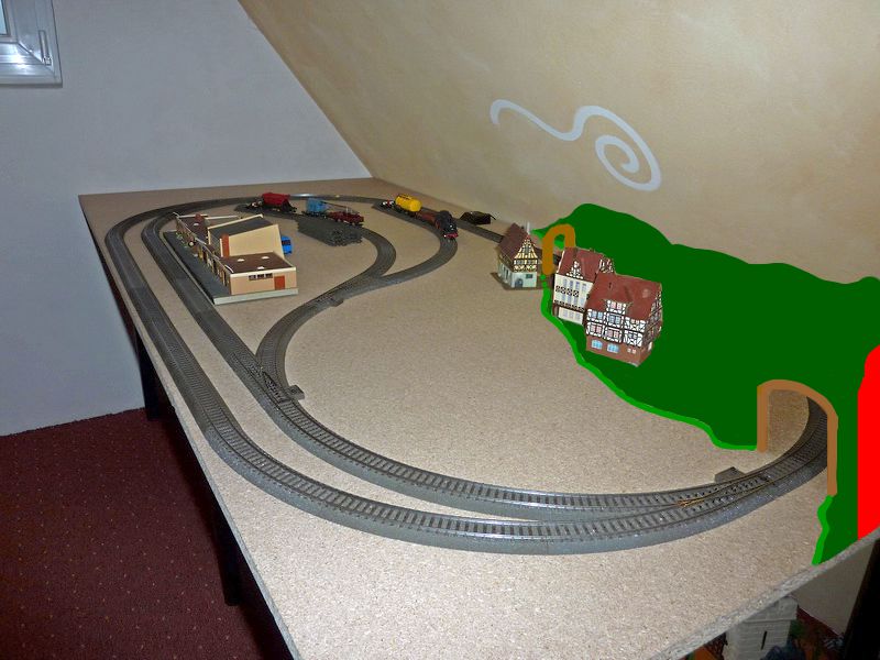 Wir möchten eine kleine Anlage aufbauen, eine Fläche von 200x95 cm steht zur Verfügung. Er würde u.a. gern einen Tunnel da drauf haben.