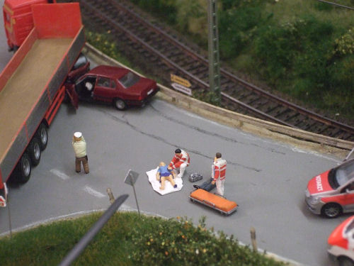Zusammengesetzt sieht es dann so aus: Leider hab ich keinen Feuerwehr vorrätig, so muss der Junge vom Bautrupp als Größenvergleich herhalten.