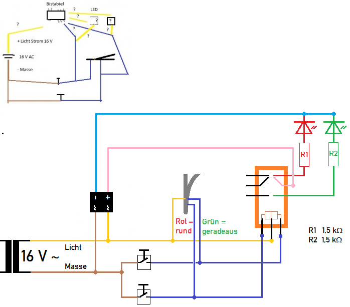 Die Weichen wie die angeschlossen werden das kann ich mir vorstellen, nur das ich unbedingt eine LED als sichtbare Rückmeldung haben will.