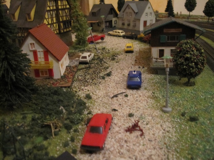 Bei den Häusern guckt das "Fundament" aus dem Boden und die Straßenlaterne hat wahrscheinlich bei genauerem Hinsehen einige Lackreste