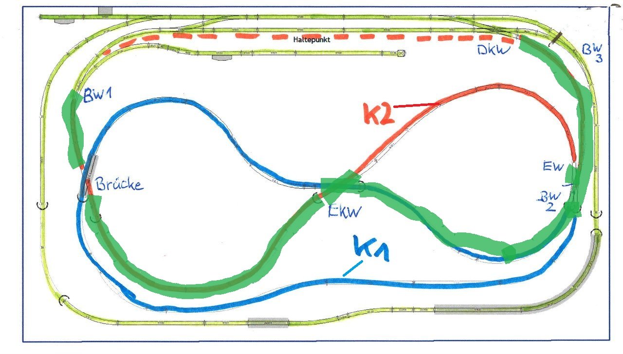 Ich gehe davon aus, dass 2 Kehrschleifenmodule benötigt werden.