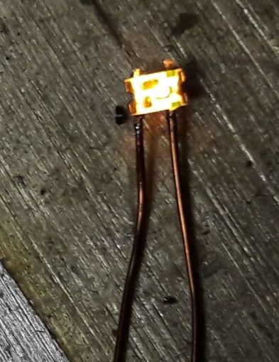 Jetzt gibt es diese LEDs schon mit "Anschlußkabel" (Kupferlackdraht) - nur leider löst sich hin und wieder einer der Drähte und muss neu angelötet werden.