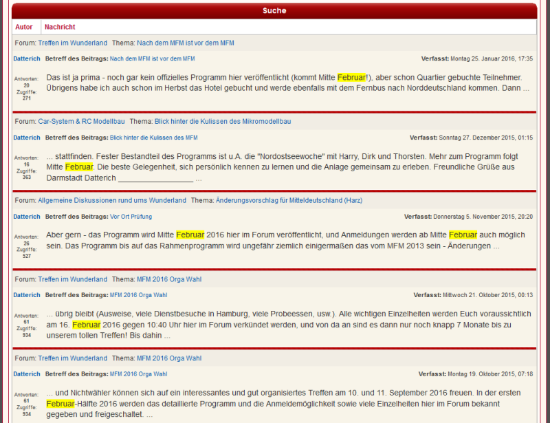 - Aber gern - das Programm wird Mitte Februar 2016 hier im Forum veröffentlicht, und Anmeldungen werden ab Mitte Februar auch möglich sein.