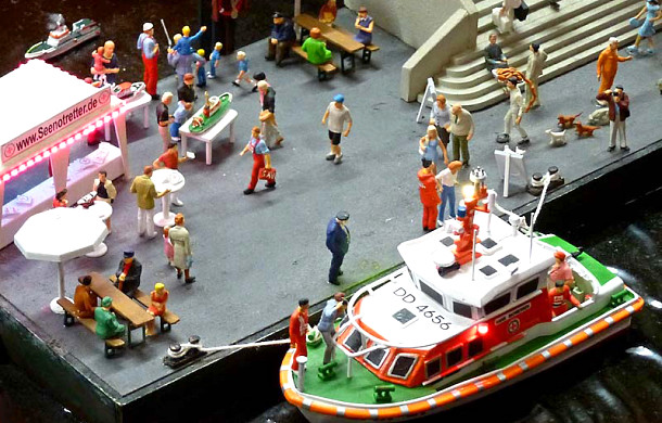 Wir erleben die unverwechselbare und einmalige "Nordostseewoche" im Wunderland! Was die "Kieler Woche" für die Kieler, ist unsere nur beim MFM stattfindende nun schon traditionelle "Nordostseewoche" für alle MFM-Teilnehmer. Diese haben die wunderbare Gelegenheit, mit Unterstützung exzellenter und feinmotorischer Mikromodellbauer selber einmal Kapitän auf großer Fahrt zu sein und auf der Nordostsee als Kapitän eines 'eigenen' Schiffes zu schippern. Die "Nordostseewoche" wird den ganzen Samstag bis zur Sonderöffnungszeit sowie auch am Sonntag bis gegen Mittag stattfinden - es bleibt also genügend Zeit, dass jede/r mal dran kommt. Lotsen, Wasserschutzpolizei und Küstenwache werden dafür sorgen, dass es keine Unfälle und keine Beschädigungen gibt.