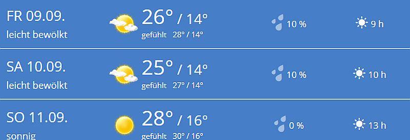 Also Sonnenbrille und evtl. kurze Hose einpacken