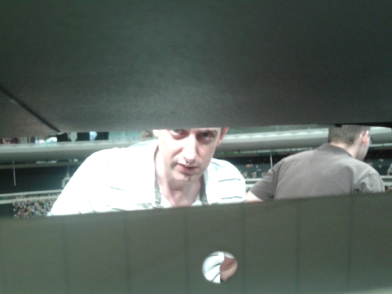 Unsere Plätze sind auf der Ehrentribüne ganz oben, ich gehe stark davon aus, mit bester Sicht von hinten auf "M" "F" & "M". Da bin ich mal auf Samstag gespannt, ob die Kamera "uns" findet.