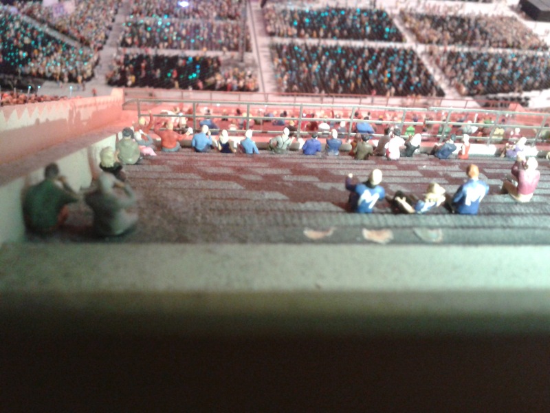 Glücklicherweise war ich Montag noch in der Stadt und traf mit Bobby und Schuh zusammen. So wurden denn die drei MFM-Preiserlein wieder auf der Tribüne verankert, sicherheitshalber drei Reihen weiter vorne, wo man nun selbst mit der Pinzette kaum noch rankommt.