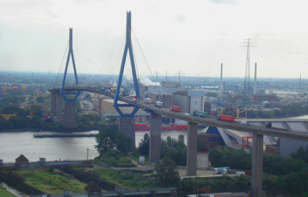 Wir starten direkt vor dem Hause. Fahrt in alte Hafenbereiche (Schuppen) und über die Köhlbrandbrücke in neue Hafenanlagen. Einmalige Gelegenheit, sich auch innerhalb der riesigen Container-Terminals persönliche Eindrücke von der Größe und der Technik eines modernen Welthafens zu verschaffen -