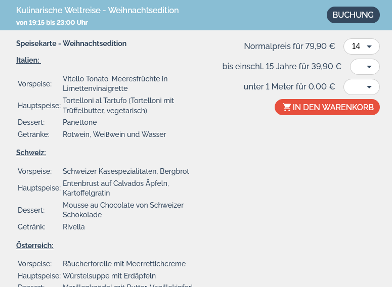 Das behauptet der organisierte Teil der Orga. In wirklicher Wirklichkeit sind an dem Termin dieses Jahr aber keine Plätze für die Kuli frei. Das geht nicht, Ihr wollt doch nicht hungrig oder gar durstig ins Hotel gehen, oder?