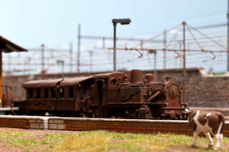 Freitag Mittag traf ich, quasi als Vorhut, in den Hallen ein. Und jeder, der mir von Freitag Mittag bis Montag Nachmittag über den Weg lief, hatte Zeit für einen kurzen Plausch oder eine kleine Hilfestellung. Ob nun Gerd Dauscher mir die Nutzung einer Minibohrmaschine gestattete (und genau erklärte, wo was zu finden ist), ob Leo von seiner Fitzelarbeit aufblickt, sich ein paar Vorschläge anhört und sie mit "Das MiWuLa-Gen ist offenbar vorhanden" quittiert, ob Mike die Neu-Anlage zur Erprobung von Rollmaterial erklärt (sowas hieß früher schlicht "Testkreis"), ob Sonja über ihren erledigten 630+Job spricht, oder wenn der "Schuh" auf Zuruf eiligst mit Kleber und Pinzette anrückt, man fühlt sich jederzeit als willkommener Gast, wie Stephan es ausdrückt.