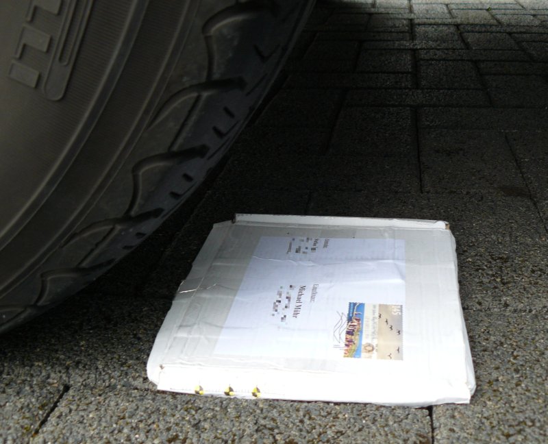 - "Ich hatte die Verpackung vorsichtshalber darauf vorbereitet, dass die Sendung dem Briefträger vom Fahrrad fällt und von einem LKW überrollt wird."