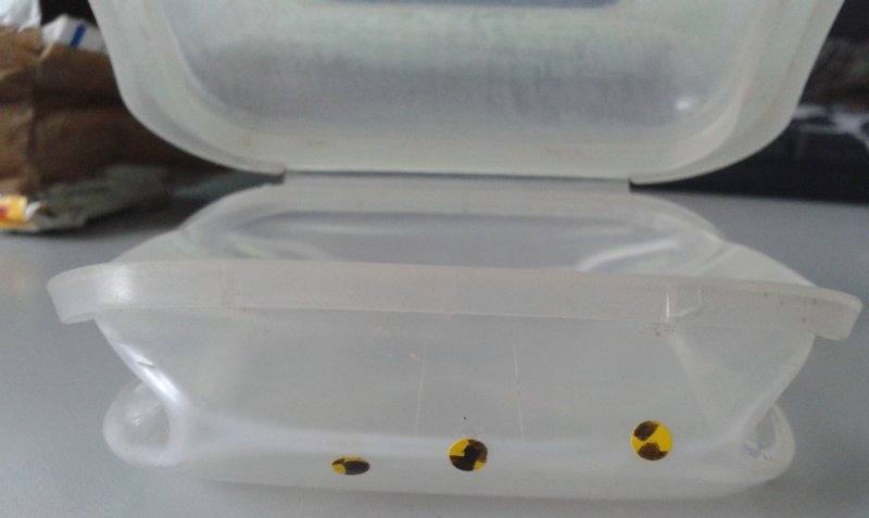 Resultat: Sehr wirksame Knautschzone! Die Schachtel faltet sich ziehharmonikaartig zusammen, desgleichen die Tupperdose. Aber der Deckel verklemmt sich nicht und lässt sich ohne Werkzeug öffnen. Der Dummy – ist heil geblieben.