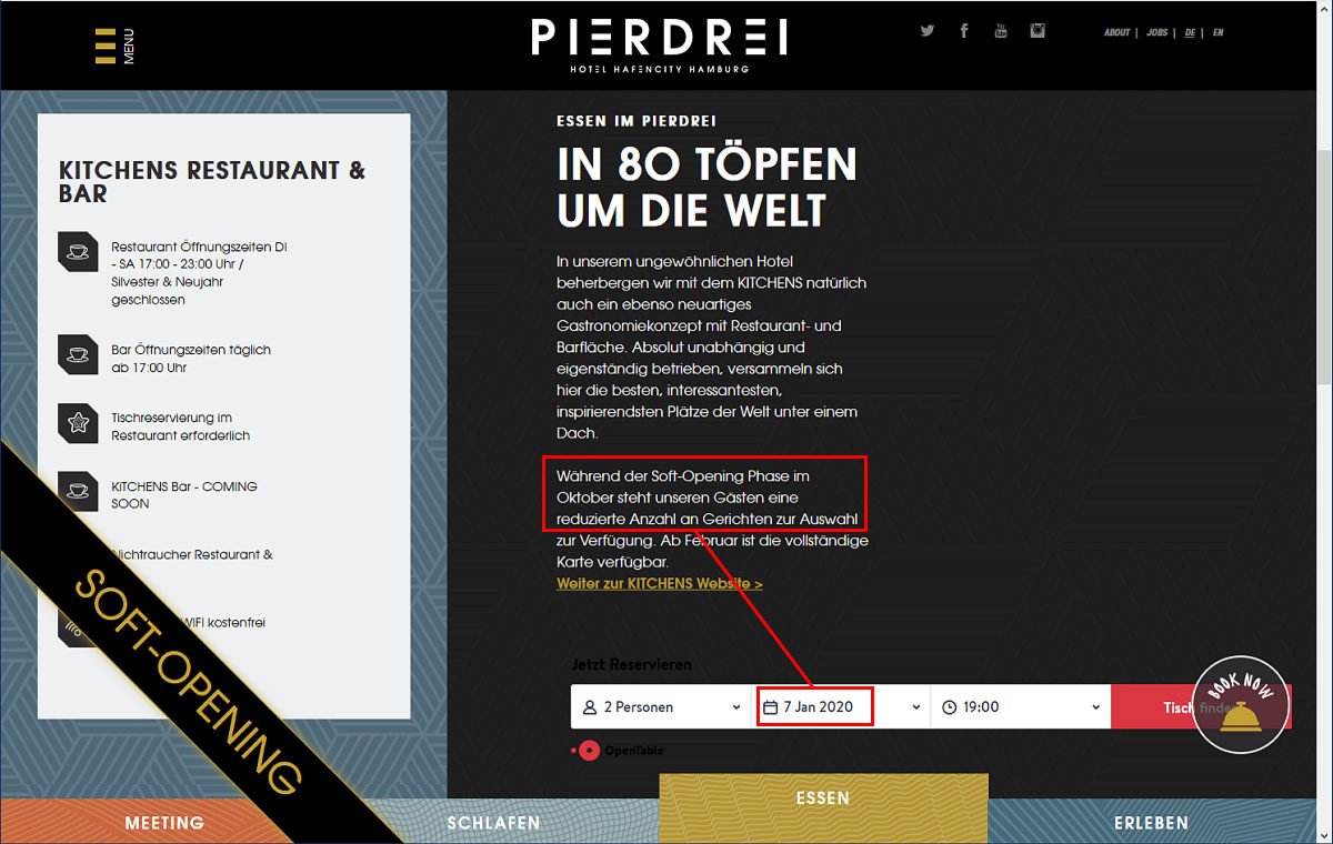 Wie wäre es mit leckerem Heidschnuckenbraten oder Sülzkotelett oder Kutterscholle mit Bratkartoffeln? Im "Kitchens Restaurant" kann man heute aber wohl nur "Katze im Sack" bestellen. Ich hoffe doch, dass eine Bestellung dort nicht so lange auf sich warten lässt, wie die heutige Webseite (Screenshot) befürchten lässt. Bis zum MFM im September sollte das allerdings Geschichte sein, denn es heißt dort weiter: "Ab Februar ist die vollständige Karte verfügbar". Da wir 2020 ein Schaltjahr haben, gibt es einen Tag kostenlos dazu.