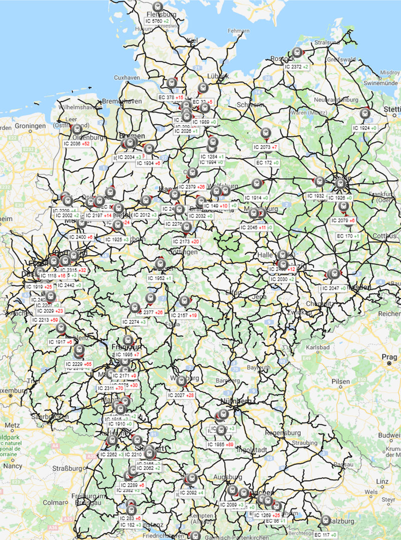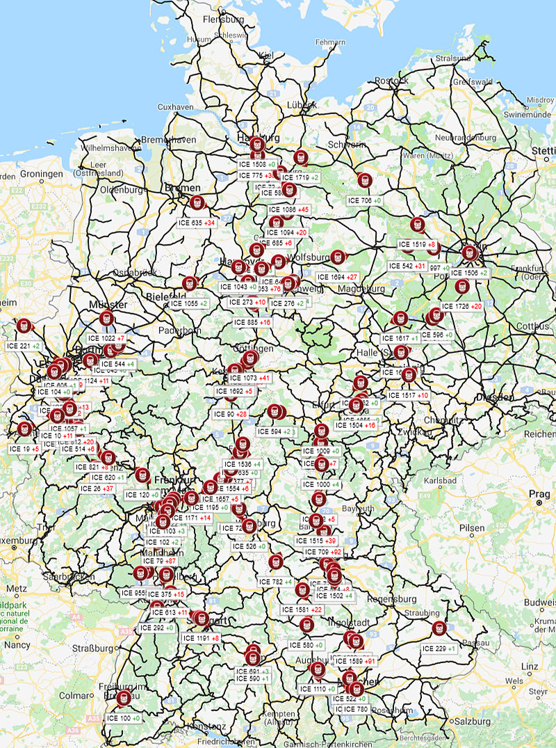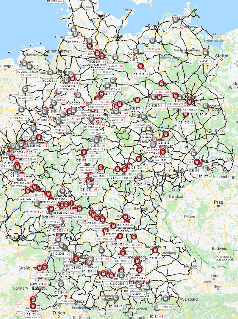 ... und zum Abschied mal eine wegen der besseren Übersichtlichkeit nach ICE und IC getrennte Auflistung für das Archiv. Stand: Sonntag, 30.09.2018 um 20:00 Uhr MESZ: