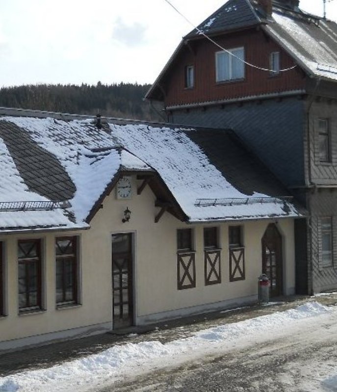 besteht der Bahnhof nur aus dem Schieferbau und dem verputzen Anbau?