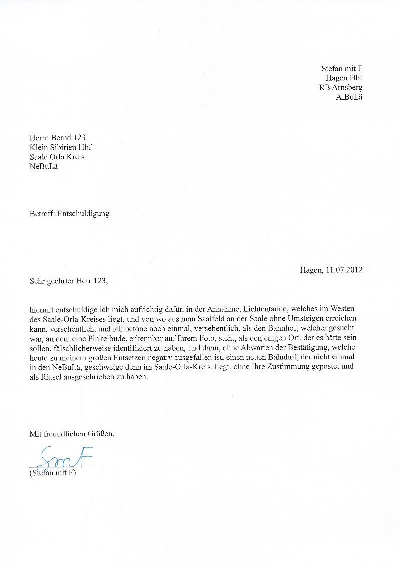 Hier übrigens das Entschuldigungsschreiben: