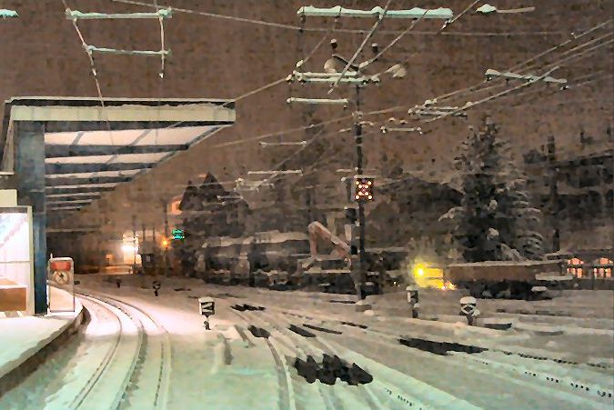 Zahnradbahn, Schnee, Drehstrom(?): ich tippe auf die Schweiz.