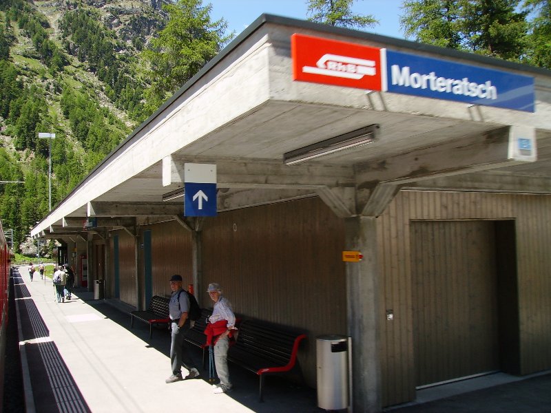 Zwei Halte weiter als Morteratsch: Pontresina.