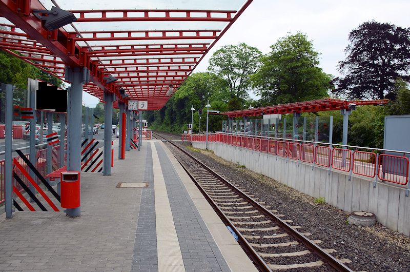 Kaarster See gefahren, und da habe ich zwar rotes Geländer aber nicht deine Haltestelle gesehen. Also musste es von Düsseldorf Hbf aus die andere Richtung sein... und siehe da,