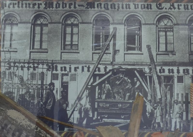 Am 12.August 1873 durchbrach eine Lokomotive den Prellbock eines Bahnhofs in Düsseldorf und zerstörte das Erdgeschoss des Möbelgeschäfts Arnold.